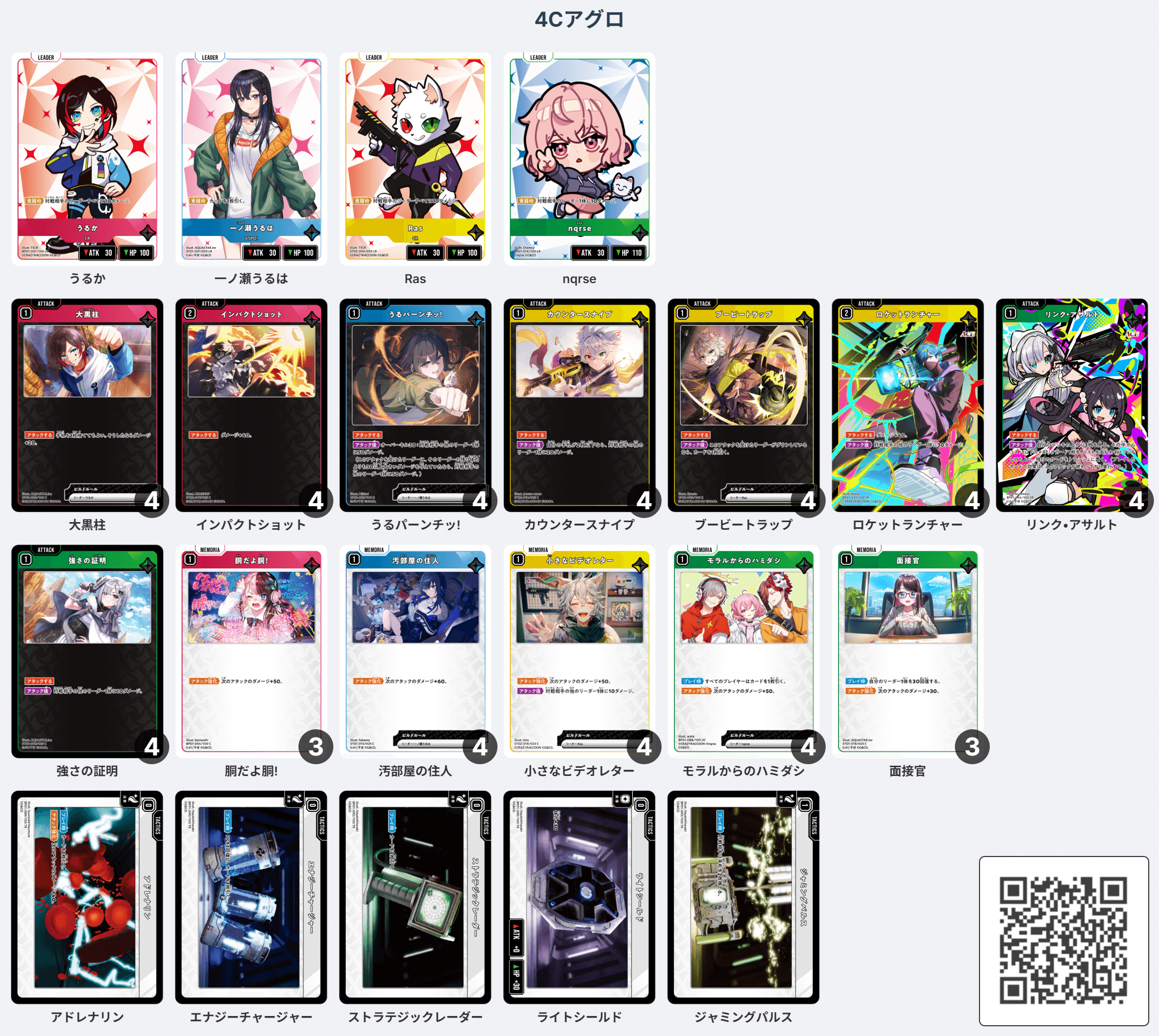うるかの専用アタックは手札を1枚捨てることでダメージが+20されます。攻撃対象へのダメージが確定で20伸びるアタックは貴重で、確実にダウンを取りたい状況で非常に活躍してくれます。手札が細いラウンド序盤には使いづらいですが、次のターンを迎えられない状況では問題無く効果を使うことができます。特に相手のリーダーが1体になった時にはダメージ割り振り系が効果を発揮できないため、単体にダメージを伸ばせるこのカードが活躍しやすいです。