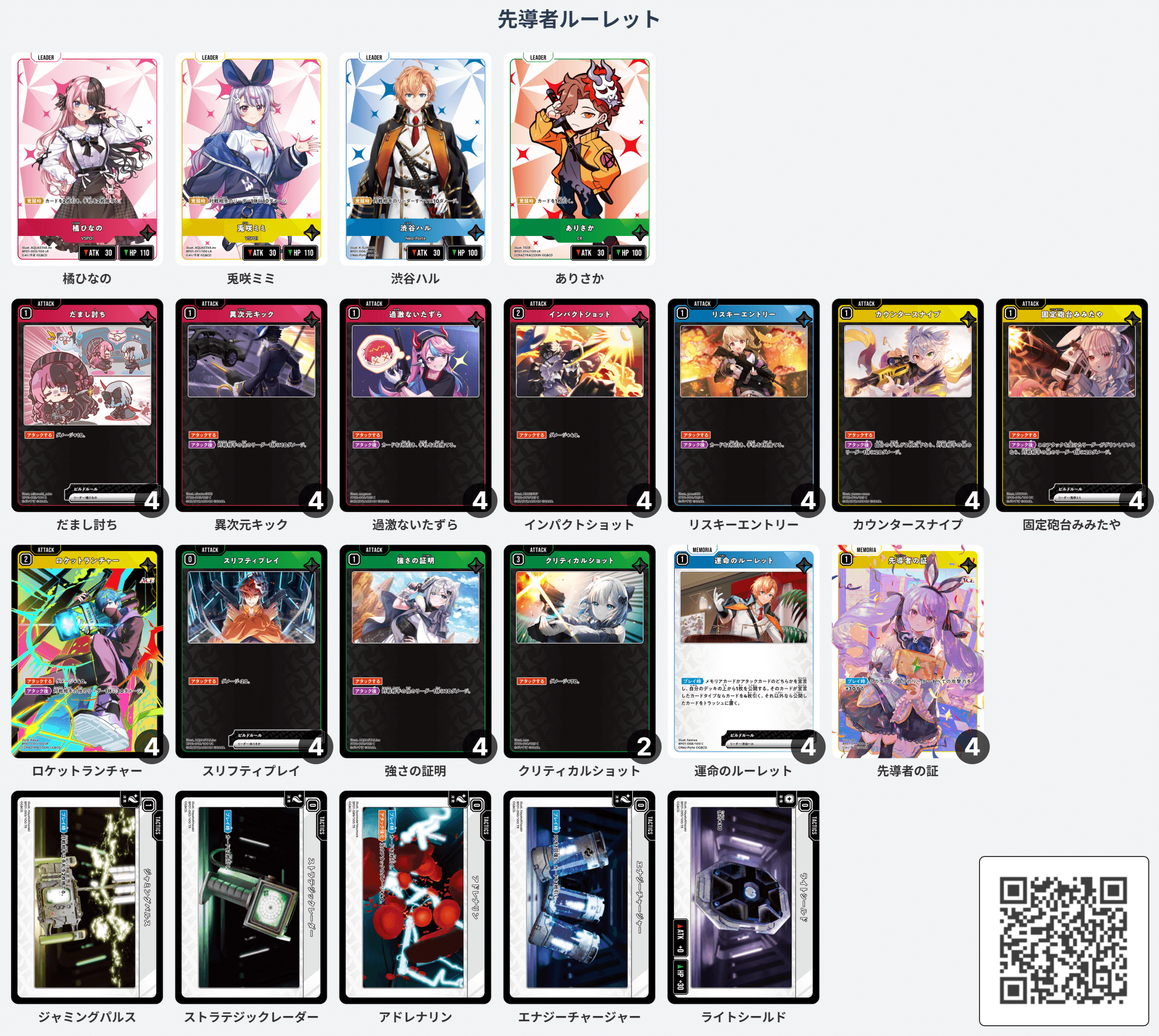 専用カードは「ダメージ+10」アタックと「ダメージ+60」メモリアで共に使いやすく、2枚でHP100のリーダーを倒せることからHP110リーダーの価値を高めている、環境に大きな影響を与えるリーダーとなっています。「VSPO!」の一員であることも大きく、「VSPO!」のみで組む制限のある「クロスファイア」や「初の栄冠」を使ったデッキで活躍できるのもポイントです。