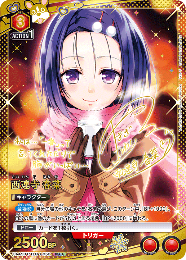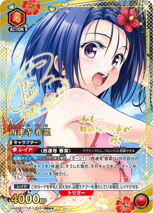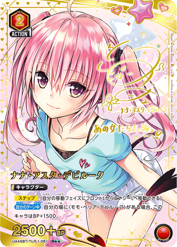 『ToLOVEる』ブースターパックでは、3種類の限定シリアルNo入りAPが稀に封入されています。★3と同じララ、モモ、ヤミの3種類がそれぞれ担当声優による直筆サインが描かれています。